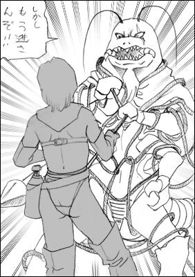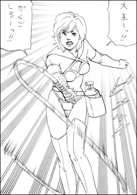 ゴキリアン大王に向かいロープを投げる女子高生であります。
