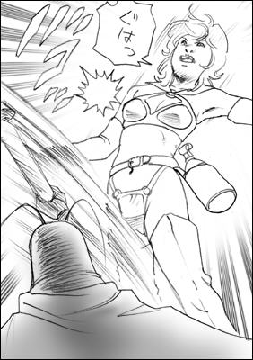 しかし逃げる女子高生よりわずかに早くゴキリアン大王の手は女子高生の足をとらえていたのであります。