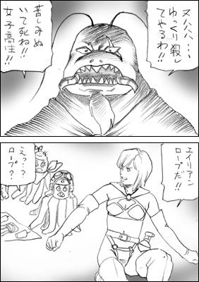 女子高生を加勢しようとするエイリアンたちでありました。