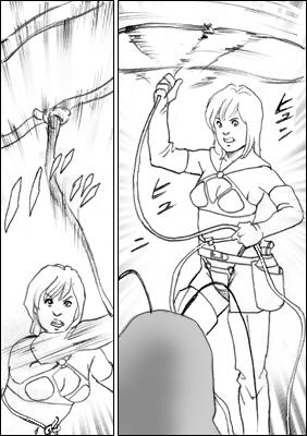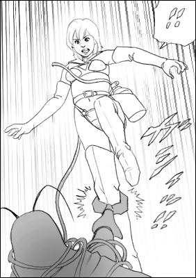 たまらずロープをほどきジャンプして逃げる女子高生であります。